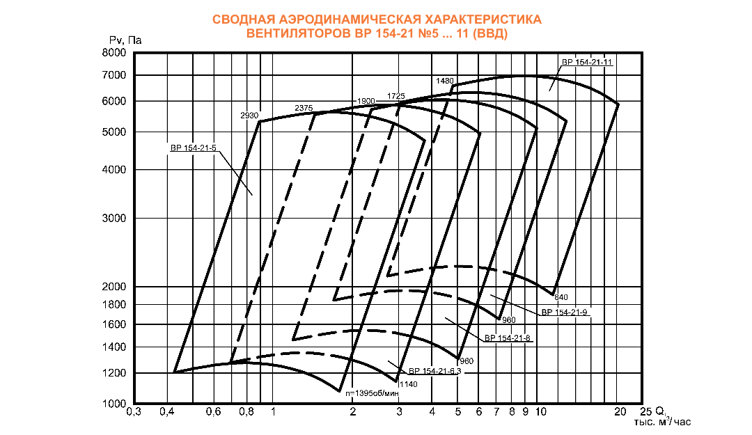 Для пересування різних газових сумішей і повітряних мас в промисловому секторі застосовуються вентилятори високого тиску ВВД (ВР 154-21) №5 исполнение №1, які відносяться до обладнання радіального (відцентрового) типу. Модель високого тиску може працювати в двох режимах – на всмоктування, а також нагнітання повітря при температурі експлуатації, яка знаходиться в діапазоні від -16 ° С до + 40 ° С. При цьому обов’язковою умовою є відсутність в повітрі довговолокнистих і липких речовин, але концентрація частинок пилу може становити не більше 150 мг / м³.
